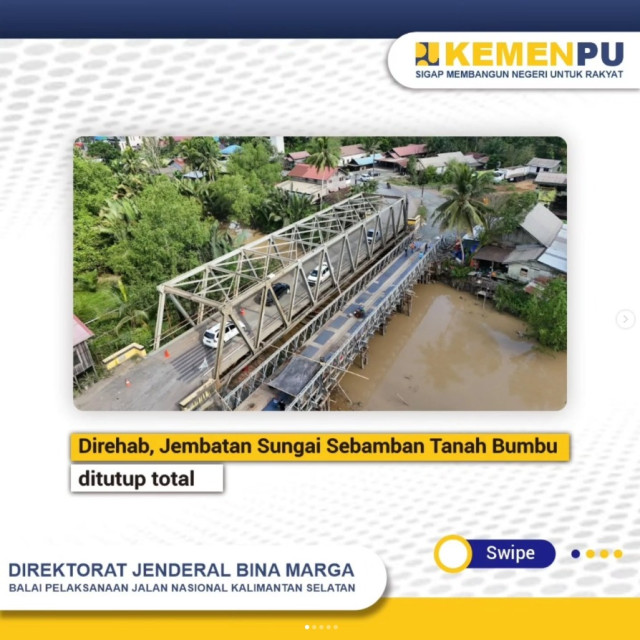 ini sehubungan akan dikerjakannya rehabilitasi Jembatan Sungai Sebamban, oleh Balai Pelaksanaan Jalan Nasional (BPJN) Kalimantan Selatan.