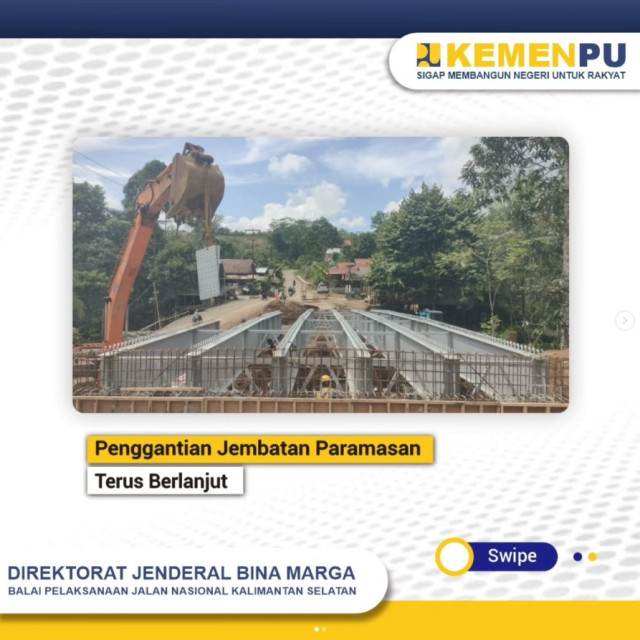 Pekerjaan penggantian Jembatan Paramasan 1 & 3 di Wilayah Paramasan Bawah, Kabupaten Banjar terus menunjukkan progres yang menggembirakan.