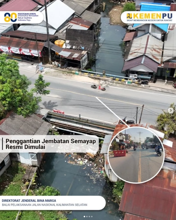 Proses penggantian Jembatan Sungai Semayap yang berada di Jalan Brigjend Hasan Basri Km 2,6, Desa Semayap, Kecamatan Pulau Laut Utara, telah resmi dimulai hari ini, Selasa, 25 November 2025, dan diperkirakan berlangsung hingga Juli 2026.