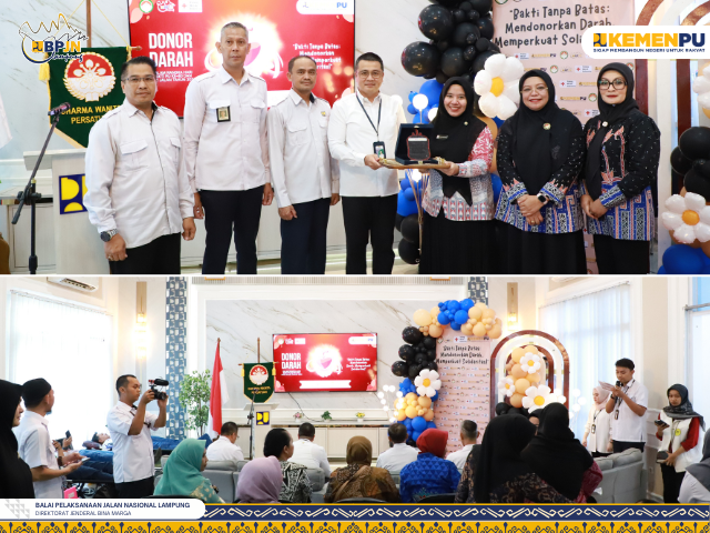 Lampung — Dalam rangka memperingati Hari Bakti PU Ke-80 dan Hari Jalan 2025, Balai Pelaksanaan Jalan Nasional (BPJN) Lampung bersama Dharma Wanita Persatuan (DWP) BPJN Lampung menggandeng PMI Provinsi Lampung untuk menggelar kegiatan donor darah pada Kamis, 4 Desember 2025.