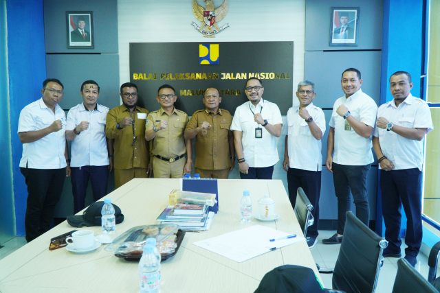 Kepala BPJN Maluku Utara Navy A. Umasangadji,S.T.,M.T beserta jajaran menerima kunjungan Bupati Kabupaten Pulau Morotai Rusli Sibua beserta jajaran diantaranya Sekda Kab. Pulau Morotai serta Kadis PU Kab. Pulau morotai, senin (22/9/2025). Kunjungan Bupati Pulau Morotai kali ini membahas tentang permasalahan dan kondisi infrastruktur serta rencana BPJN Maluku utara dalam pembangunan infrastruktur kedepannya khususnya di Kabupaten Pulau Morotai. Dengan pertemuan ini diharapkan memperkuat sinegitas antara pemerintah pusat dan daerah terutama dalam pembangunan infrastruktur demi kelancaran konektivitas dan mobilitas barang dan jasa yang berdampak bagi pertumbuhan ekonomi lokal serta kesejahteraan masyarakat.