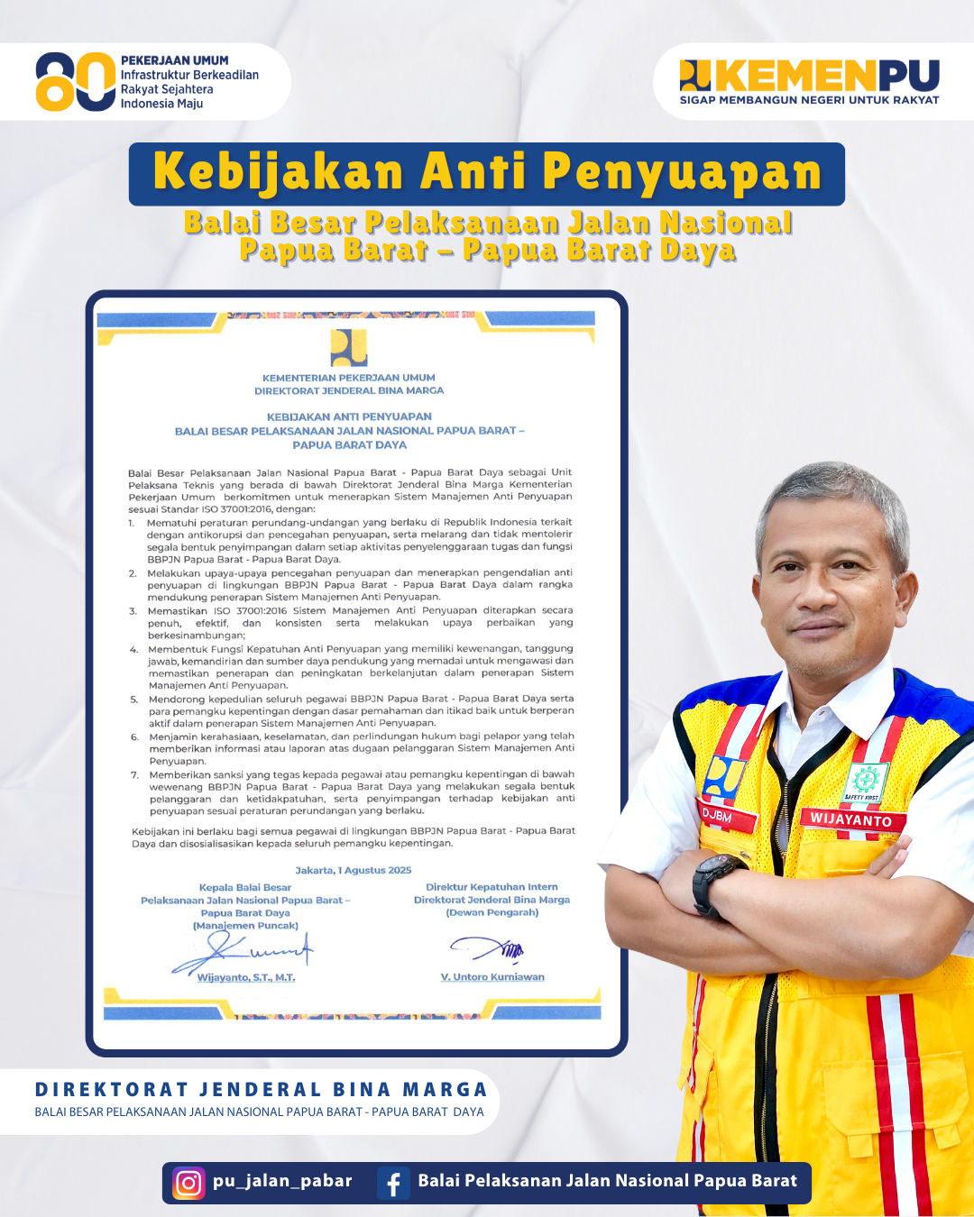 Paket IJD 2025 Peningkatan Jalan Mega – Sausapor – Warmadi tuntas 100% pada akhir Desember 2025. Akses semakin lancar, mobilitas masyarakat meningkat, dan konektivitas wilayah Tambrauw kian terbuka. Infrastruktur hadir untuk mendorong pertumbuhan ekonomi dan kesejahteraan bersama.