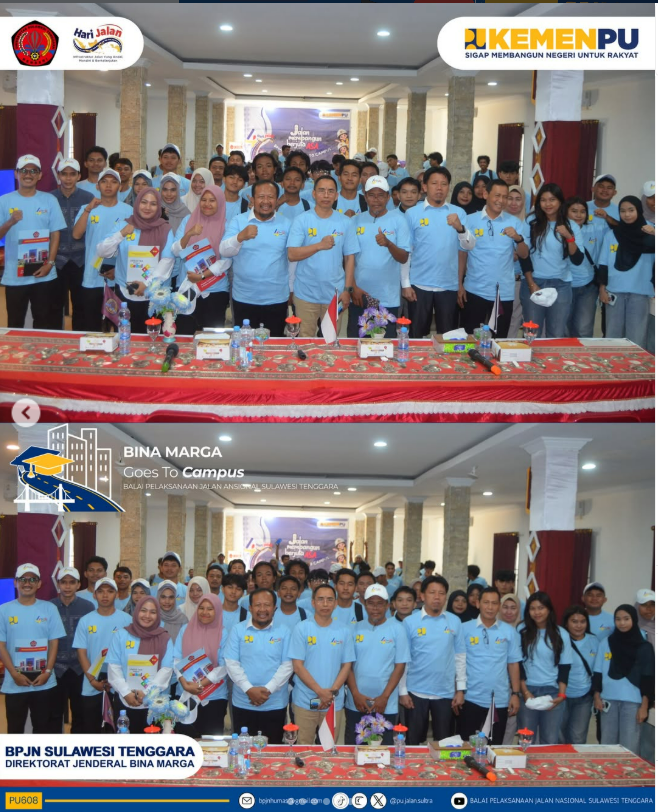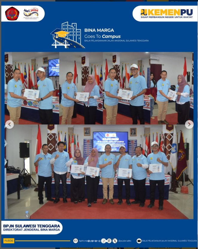 BPJN Sulawesi Tenggara melalui kegiatan Bina Marga Goes To Campus hadir di Universitas Sulawesi Tenggara (Unsultra) pada 29 Desember, dalam Sharing Session: Pengenalan BPJN Sultra. Kegiatan ini menjadi ruang berbagi pengetahuan seputar peran Kementerian PUPR, BPJN Sultra, preservasi jalan, hingga tips dan strategi lolos CPNS.