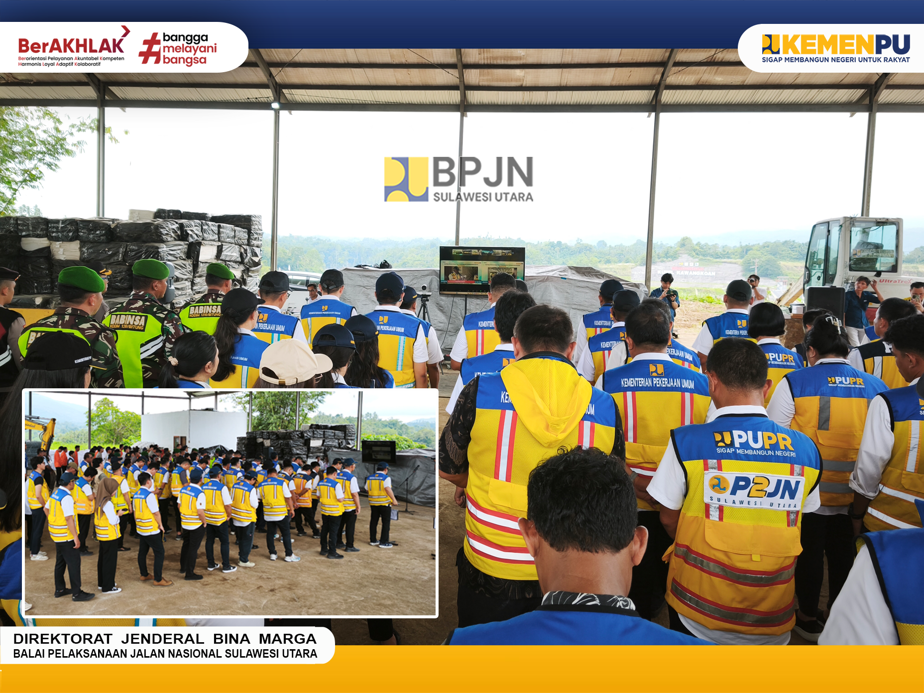 Hadir dalam kegiatan ini Kepala BPJN Sulawesi Utara bapak Handiyana, Kepala BWS Sulawesi I bapak Sugeng Harianto, Kepala BPBPK Sulut bapak Reza R. Pratama, Kepala BP2JK Sulut bapak Widyanto Sumaga, Kasatker SNVT Prasarana Strategis bapak Kries Kuswara.