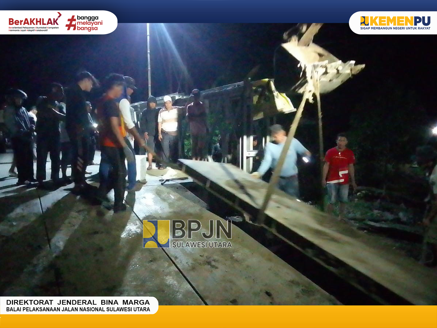 PPK 2.1 Prov. Sulawesi Utara melakukan respon cepat dengan menurunkan Tim untuk melakukan pebaikan berupa pembongkaran timbunan dan penggantian plat baja (rump door) yang mengalami kerusakan. Kegiatan ini dilakukan selama satu hari, pada rabu 16 Juli 2025.