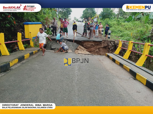 BPJN Sulawesi Utara Lakukan Penanganan Darurat, Amblasnya Jembatan di Ruas Jalan Nasional Esang - Rainis STA 8+200