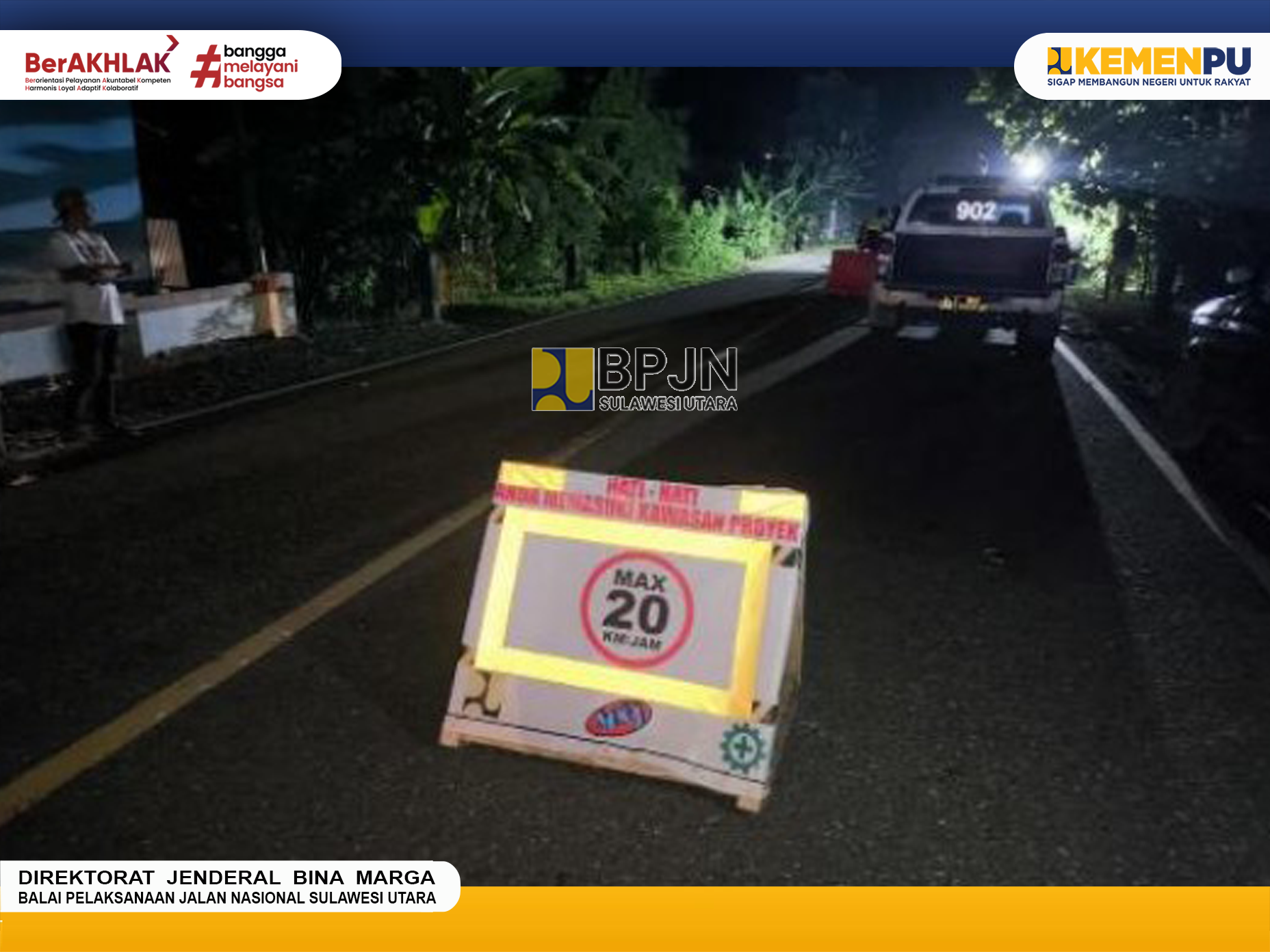 Rabu, (17/09/2025) Balai Pelaksanaan Jalan Nasional (BPJN) Sulawesi Utara melalui Satker PJN Wilayah II, PPK 2.4 Provinsi Sulawesi Utara Lakukan Penanganan sementara Ruas Jalan Nasional Kaiya - Kotamobagu (STA 22+075) yang mengalami Amblas, tepatnya di Desa Muntoi Kecamatan Passi Barat Kabupaten Bolaang Mongondow.
