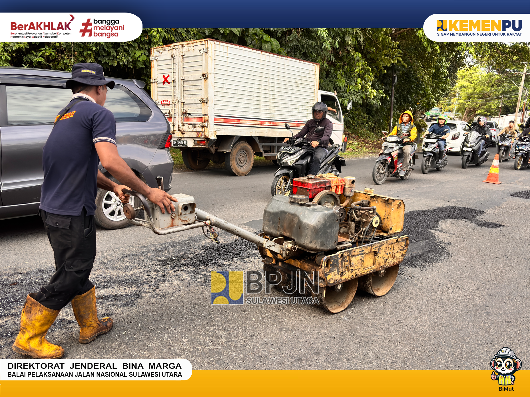 Rabu (09/07/2025), Dalam upaya meningkatkan kenyamanan dan keselamatan pengguna jalan, Balai Pelaksanaan Jalan Nasional (BPJN) Sulawesi Utara melalui Pejabat Pembuat Komitmen (PPK) 1.3, Satker PJN Wilayah 1 Provinsi Sulawesi Utara terus melakukan perbaikan terhadap ruas jalan yang mengalami kerusakan. Salah satu ruas yang saat ini sedang mendapat penanganan adalah ruas jalan Wolter monginsidi bitung, STA 7+500 s/d 7+850.
