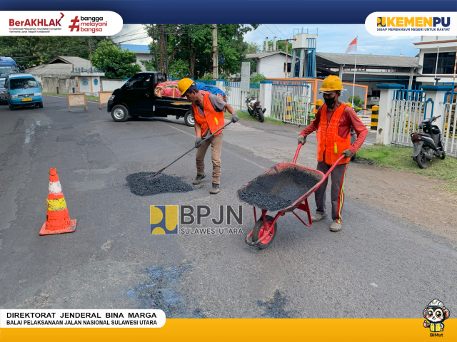 Perbaikan ruas jalan ini telah dilaksanakan sejak tanggal 7 juli 2025, diharapkan perbaikan ini dapat mengurangi risiko kecelakaan dan kemacetan akibat jalan berlubang serta meningkatkan kenyamanan dan keselamatan pengguna jalan, sekaligus mendorong produktivitas masyarakat khususnya yang ada di Kota Bitung.