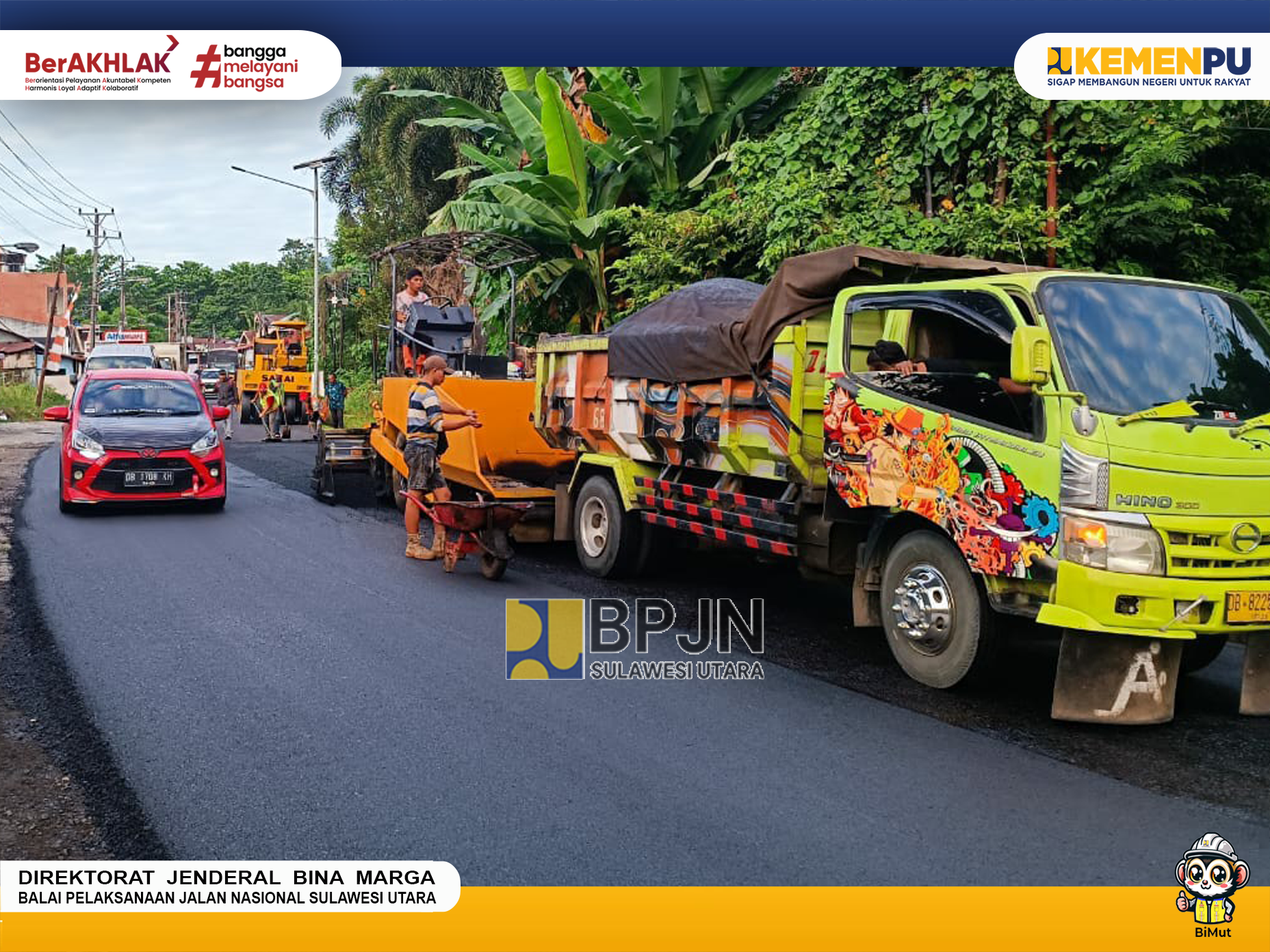 Balai Pelaksanaan Jalan Nasional (BPJN) Sulawesi Utara, melalui Satuan Kerja Pelaksanaan Jalan Nasional Wilayah I Prov. Sulawesi Utara melaksanakan tindakan perbaikan jalan yang berlubang dan tergenang air pada Ruas Jalan Nasional Bts. Kota Manado-Tomohon (STA. 0+130) dan Ruas Jalan Lingkar Kota Manado (MORR I) (STA 2+275). Kegiatan ini telah berlangsung selama dua hari, di mulai pada hari jumat 11 Juli sampai dengan 12 Juli 2025.