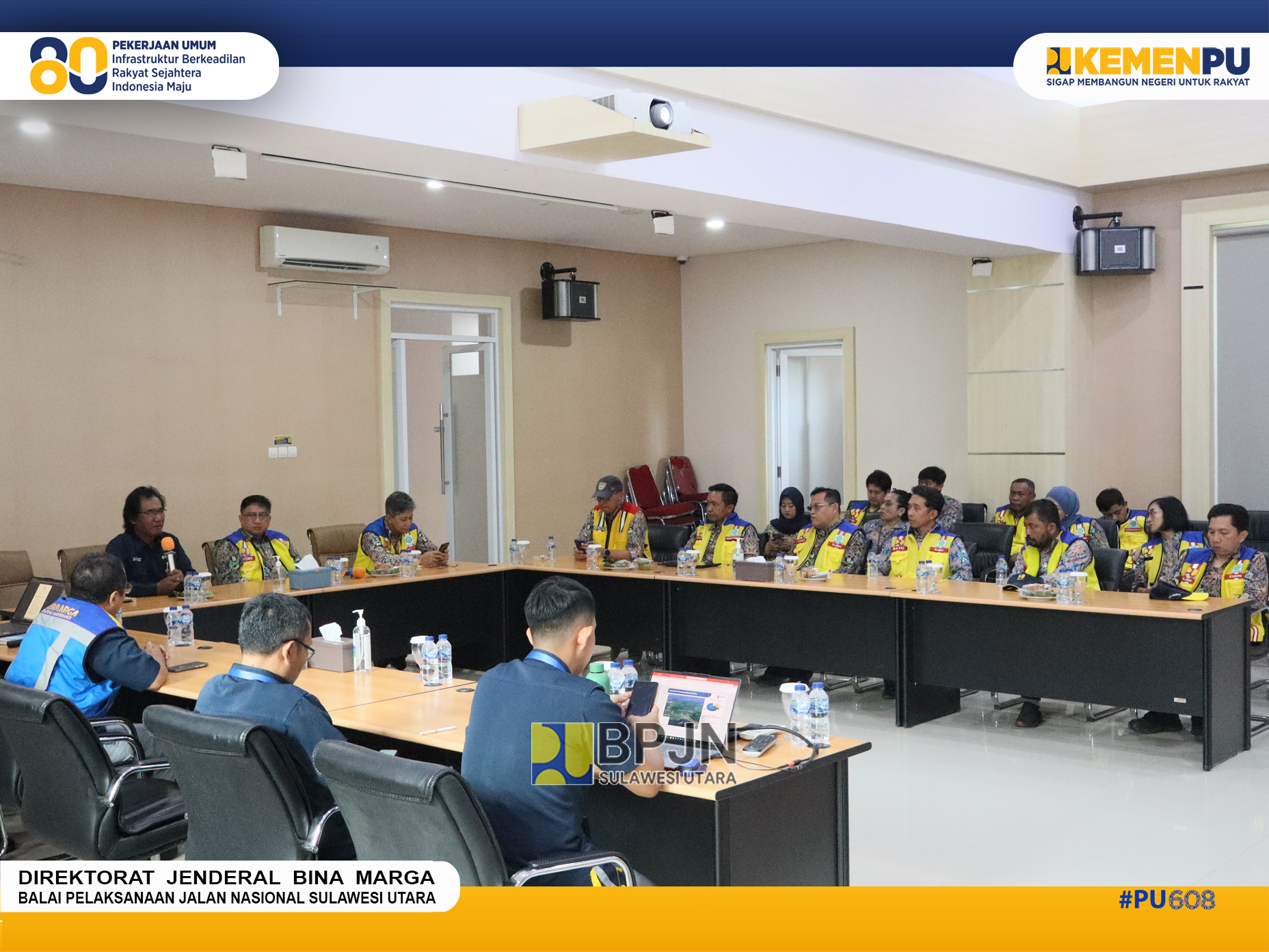 Selasa 9/12/2025 BPJN Sulut dipimpin oleh Kepala BPJN Sulut Bapak Handiyana bersama Kasatker PJN Wil. I dan Kasatker PJN Wil. II Prov. Sulawesi Utara bersama beberapa PPK mendampingi kunjungan Direktur Kepatuhan Intern Ditjen Bina Marga, Bapak V. Untoro Kurniawan dan Kasubdit Preservasi Wilayah 2A Bapak Syah Putra A. Gani bersama tim yang melakukan monitoring dan evaluasi untuk kesiapan jalur mudik Natal dan Tahun Baru 2025/2026.