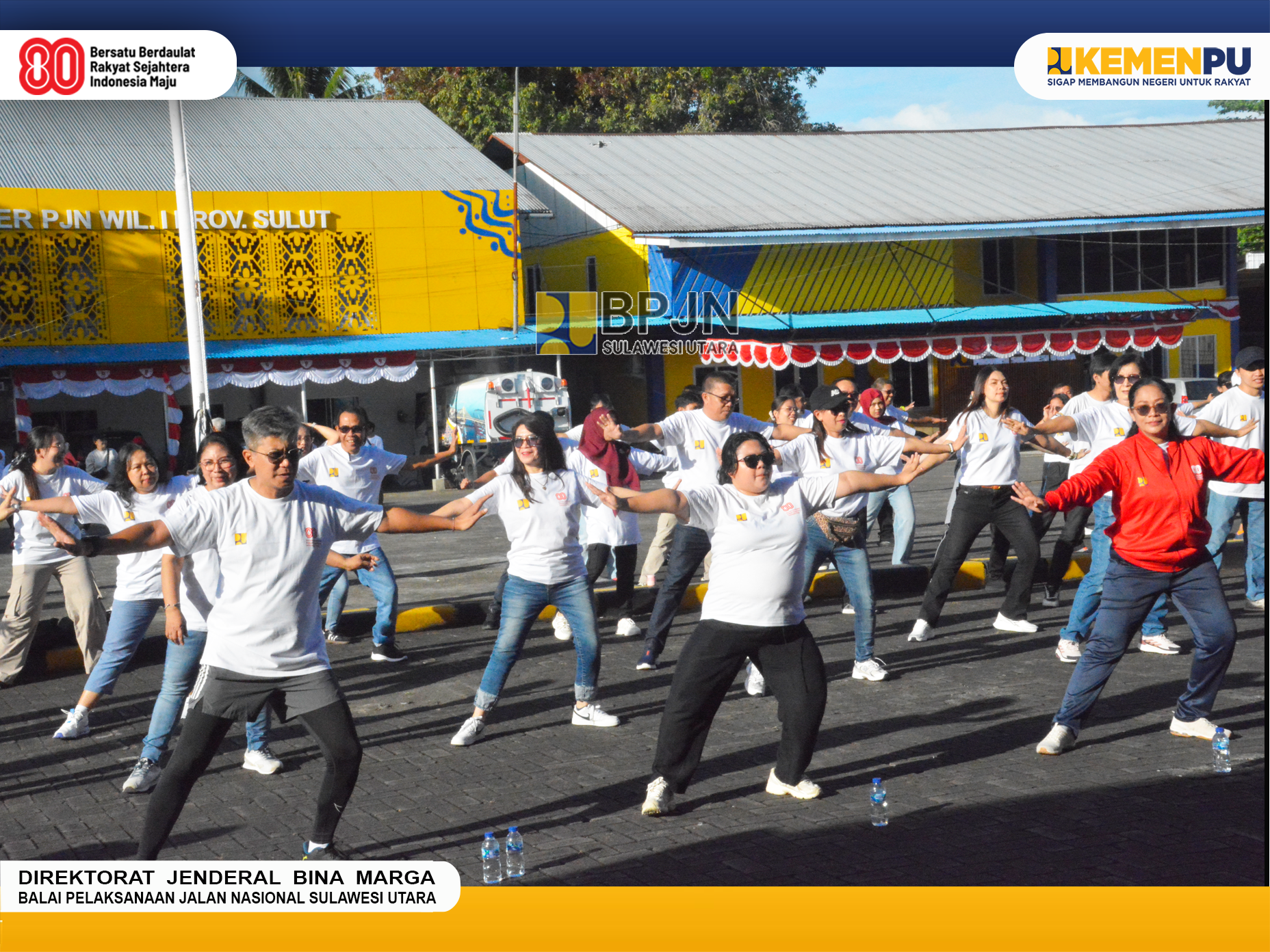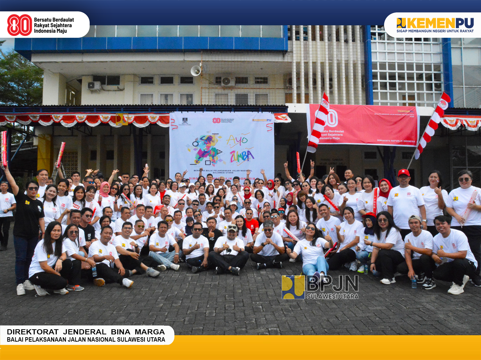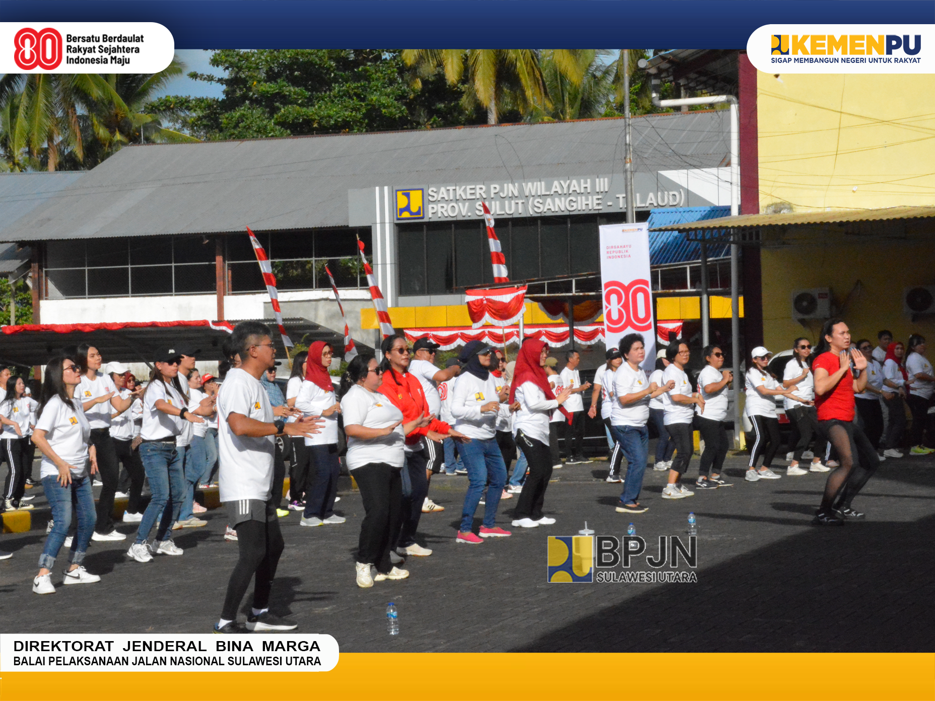 Dalam rangka memeriahkan peringatan Hari Ulang Tahun Kemerdekaan Republik Indonesia ke-80, Seluruh Unor Balai se-Sulawesi Utara Kementerian Pekerjaan Umum melaksanakan Senam "Zumba" Bersama. Jumat (15/08/2025).