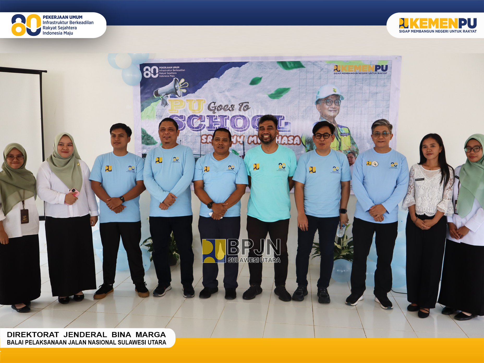 Balai Pelaksanaan Jalan Nasional (BPJN) Sulawesi Utara bersama Unit Pelaksana Teknis (UPT) dan Dharma Wanita Persatuan (DWP) Kementerian Pekerjaan Umum Provinsi Sulawesi Utara menggelar kegiatan PU Mengajar dengan tema "Infrastruktur Berkeadilan, Rakyat Sejahtera, Indonesia Maju" dalam rangka memperingati Hari Bakti PU ke-80. Kegiatan ini berlangsung pada Rabu, 26 November 2025, bertempat di Sekolah Rakyat Menengah Atas (SRMA) 44, Desa Tampusu Kabupaten Minahasa.