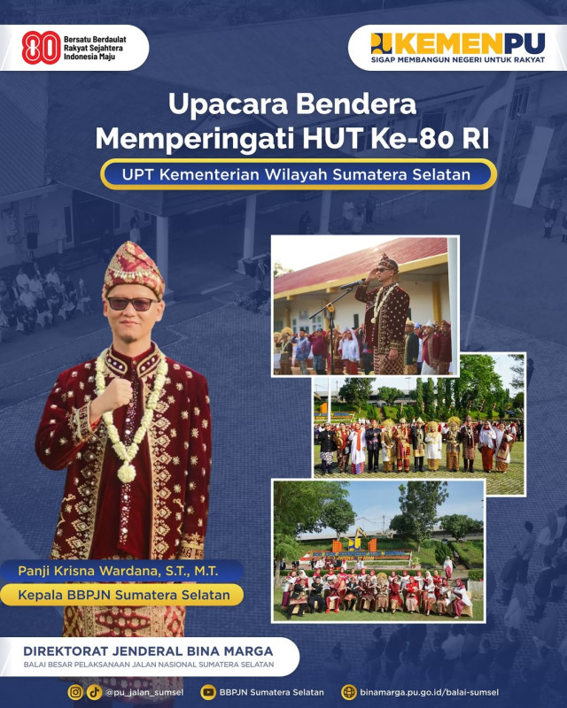 Peringatan HUT RI ke-80 ini menjadi momentum bersejarah untuk merefleksikan kembali nilai-nilai perjuangan, persatuan, dan semangat pengabdian dalam membangun negeri. Melalui upacara bendera, seluruh insan BBPJN Sumatera Selatan diingatkan akan peran strategisnya dalam mendukung pembangunan nasional, khususnya melalui penyediaan infrastruktur jalan yang andal, aman, dan berkelanjutan.