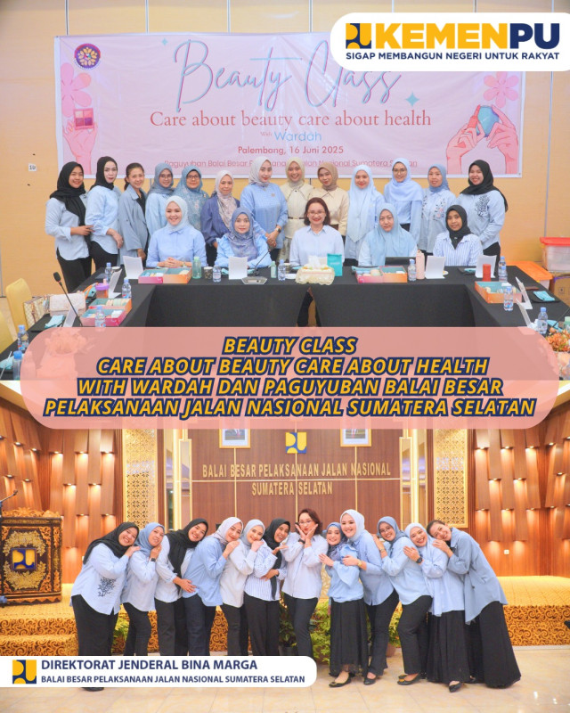 Kecantikan sejati terpancar dari hati yang sehat dan bahagia. Berangkat dari semangat tersebut, Paguyuban BBPJN Sumatera Selatan menyelenggarakan kegiatan Beauty Class bertema “Care About Beauty, Care About Health” bersama Wardah pada Senin, 16 Juni 2025. Kegiatan ini diikuti oleh Ibu-ibu Dharma Wanita Persatuan BBPJN Sumatera Selatan dengan penuh antusiasme.