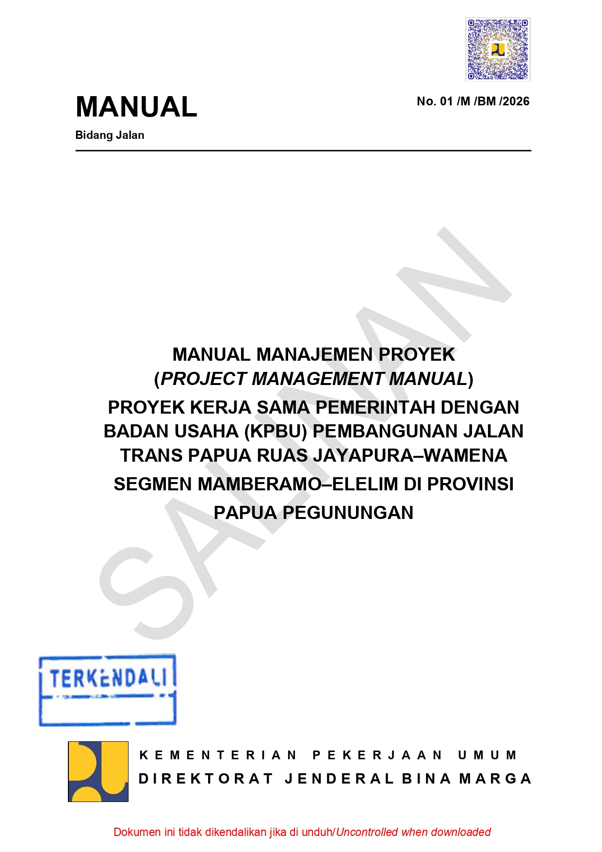 01/M/BM/2026 Manual Manajemen Proyek (Project Management Manual) Proyek Kerja Sama Pemerintah dengan Badan Usaha (KPBU) Pembangunan Jalan Trans Papua Ruas Jayapura–Wamena Segmen Mamberamo–Elelim di Provinsi Papua Pegunungan