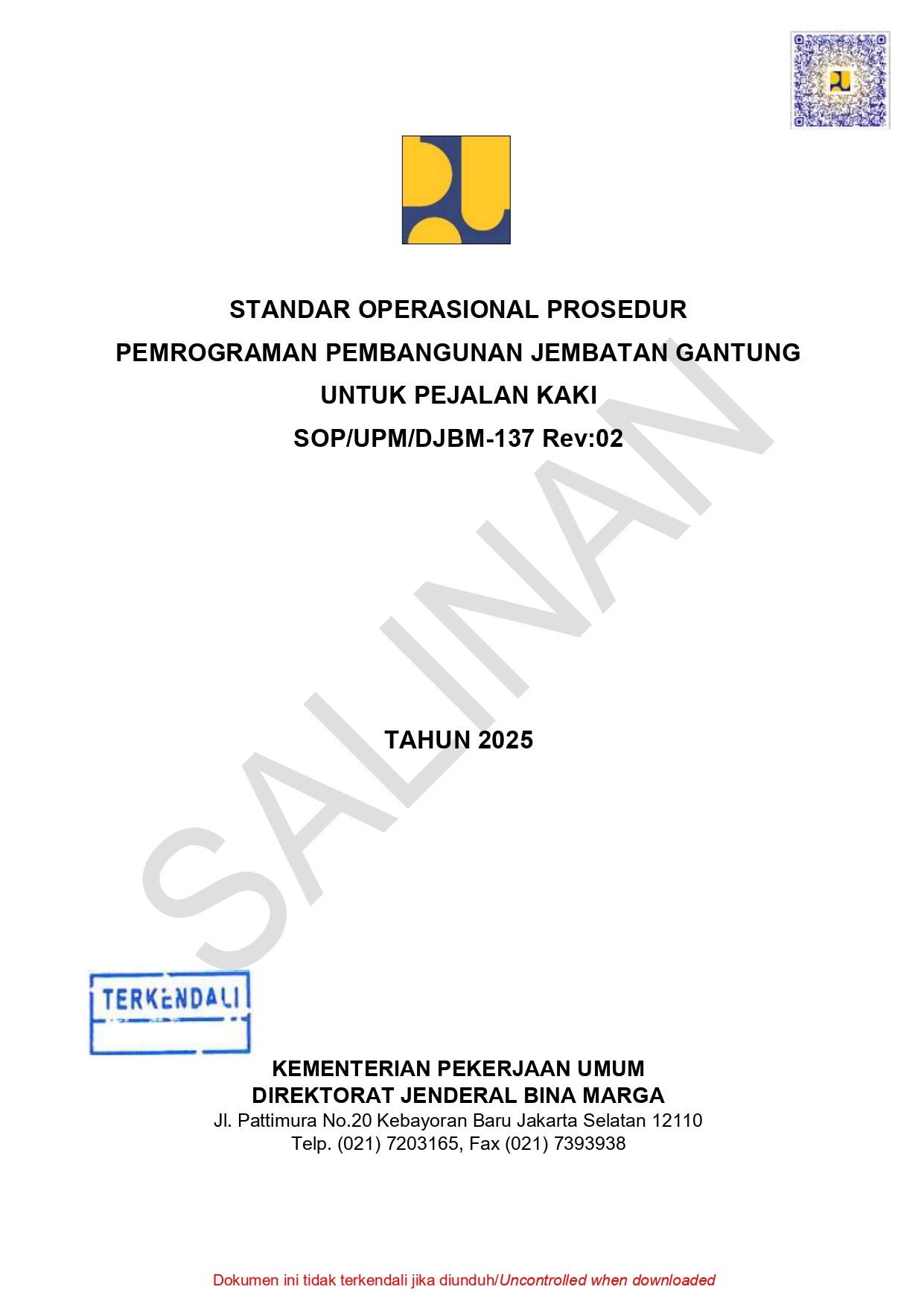 SOP/UPM/DJBM-137 Rev:02 tentang Pemrograman Pembangunan Jembatan Gantung untuk Pejalan Kaki