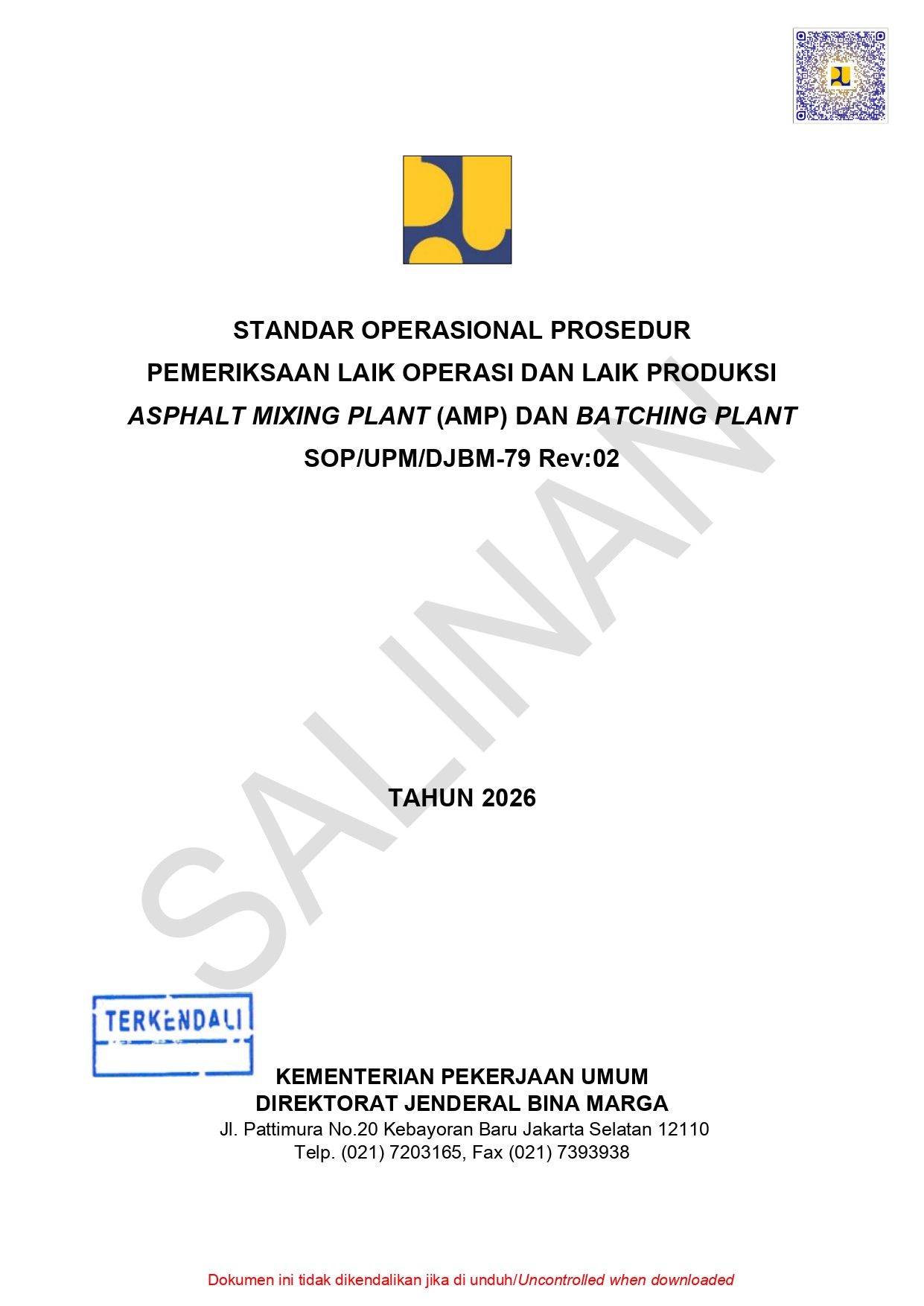 SOP/UPM/DJBM-79 Rev:02 tentang Standar Operasional Prosedur Pemeriksaan Laik Operasi dan Laik Produksi Asphalt Mixing Plant (AMP) dan Batching Plant